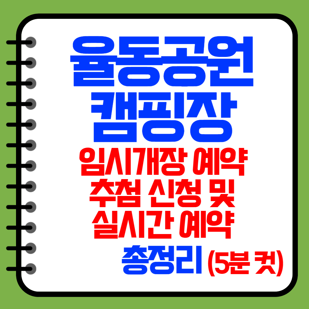 그런데, 막상 예약을 하려니 “어디서 해야 하지?”, “언제 열리더라?”, “당첨 방식이라는데 뭔 소리야?” 하고 막막하셨죠? 걱정 마세요! 이 글 하나면 율동공원 오토캠핑장 예약, 완벽히 마스터할 수 있습니다.