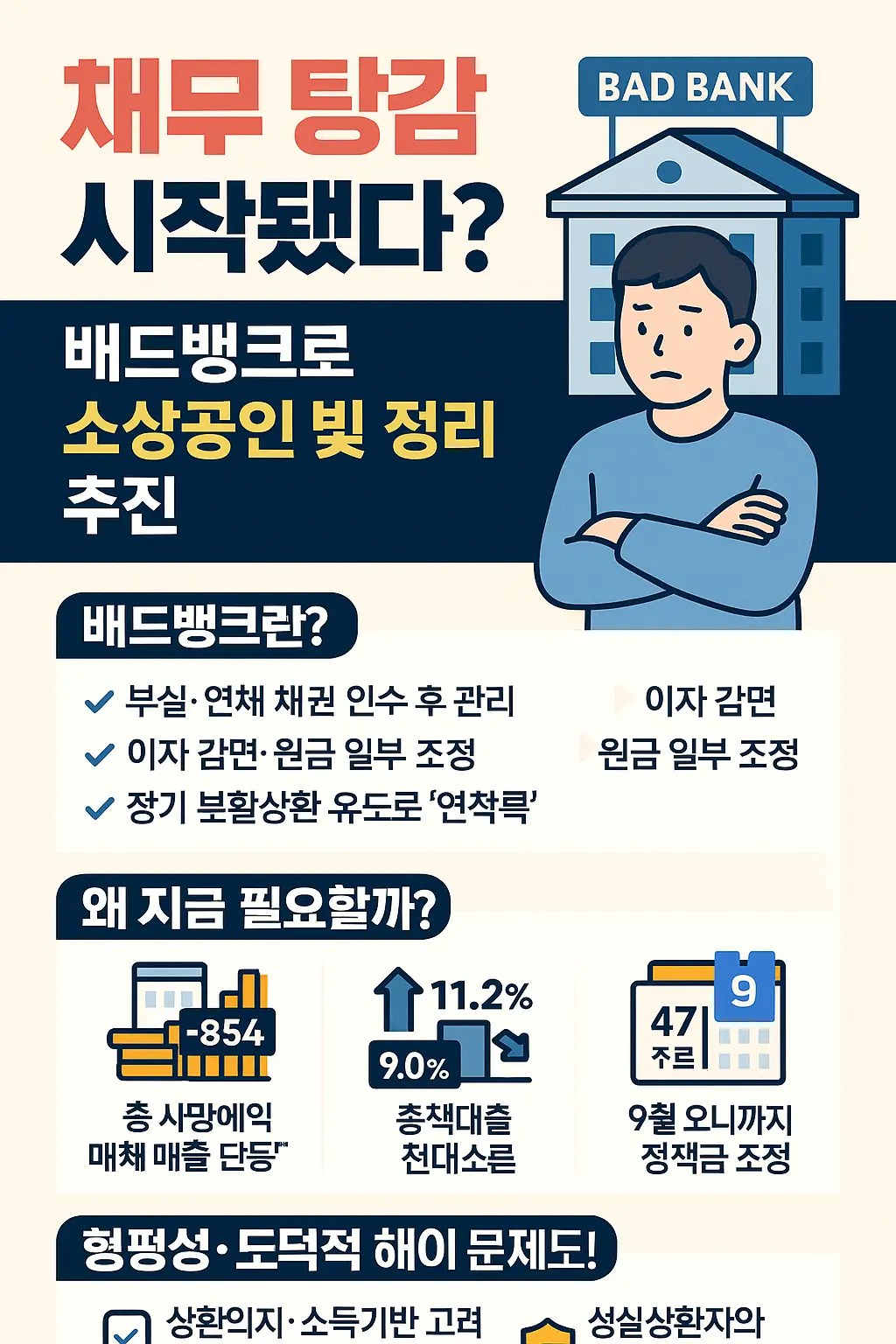 ‘배드뱅크 제도’라고도 불리는 자영업자 빚탕감 제도는 말 그대로 감당하기 어려운 빚을 정부가 나서서 해결해주는 구조입니다. 여기서 핵심은 단순한 이자 면제가 아니라, 원금 자체를 감면해준다는 데 있습니다.