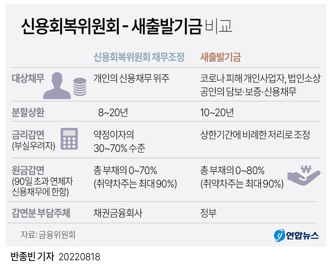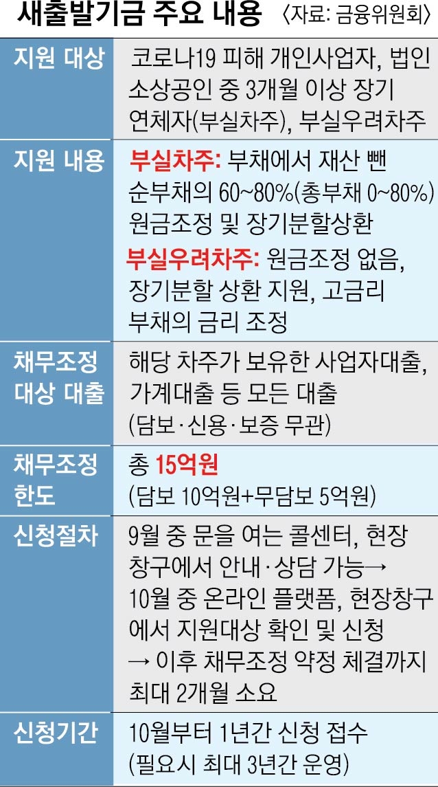 | 새출발기금 | 코로나 피해 자영업자, 1억 원 이하 채무 |
